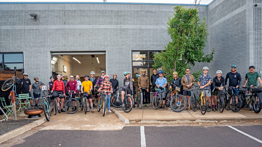 It is easy to be a fair-weather cyclist in Boulder, as Colorado’s Front Range is known for its ample sunshine and relatively mild winters. As such, Colorado’s cyclists aren’t generally known for being the most tolerant of precipitation. If I hadn’t been in charge of leading the night’s group ride, there’s certainly a strong chance that the afternoon weather would have curtailed my motivation to get on the bike. So I was especially surprised and delighted to see a healthy crowd of more than two dozen riders gathered outside Treehouse, seemingly unfazed by the short-lived downpour. After giving a short introduction of myself and the new Poteau Mountain tire up for raffle that night, and snapping a group photo, I led the group out for a mixed-surface ride up one of Boulder’s most accessible climbs, Chapman Drive.
