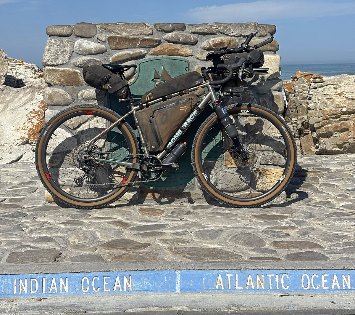 We couriered a set of replacement tires to Windhoek in Namibia and put Adrien in touch with a friend of relatives, the Namibian ex-pro racer Dan Craven, who helped get the tires through customs in record time. On new rubber, Adrien rolled through the deserts of Namibia and South Africa before finishing in the lush Cape Province.