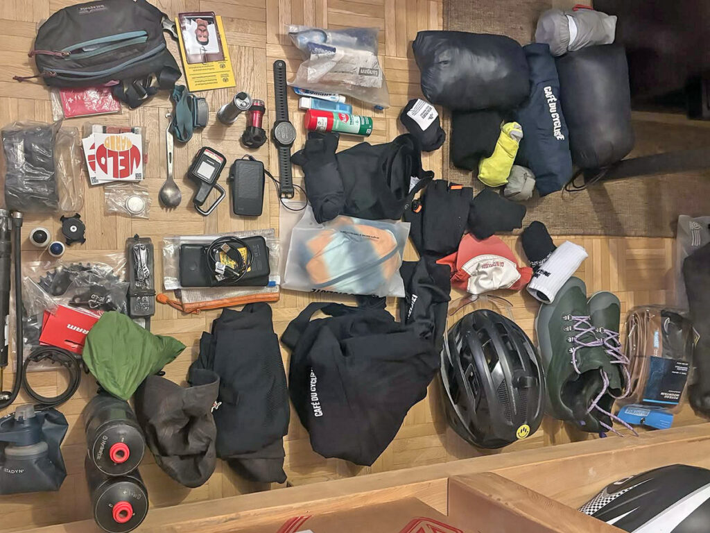 What about the bike Adrien chose for his big adventure? He explained: “This bike sits between a touring and a racing bike. It’s fast on asphalt, stable off-road, easy to maintain, and comfortable for long days. As usual I picked up my new bike at Velomario in Bern. A well-built bike depends more on good mechanics than on fancy parts, and I really trust them.”