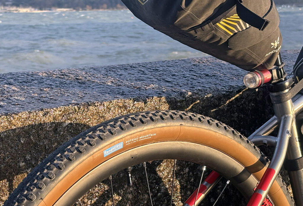 Adrien selected the new 700 x 48 Poteau Mountain semi-slicks for his big adventure. Their combination of speed on pavement and traction on loose surfaces make them a natural choice. The Endurance casing should be able to handle everything Africa can throw at it. Adrien set up his tires tubeless for peace of mind, considering the many thorns he’ll encounter on his journey.