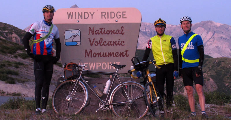 When we read this story in Raymond Henry’s Bicycle Quarterly article about Charrel (BQ 30), our immediate thought was: “We need to try something like this.” Thus was born the Cyclos Montagnards Challenge: To ride from Seattle to the highest (paved) roads on Loowit (Mount St. Helens) and Tahoma (Mount Rainier) and back in 24 hours—a ride of 530 km (330 miles). Ryan H, Mark VdK and Jan set out in 2009 on a ride they’ll remember. Seeing the sun rise on the crater of Loowit after riding all night was a high point. They made it back to the start point, a café in the Leschi neighborhood of Seattle, with 21 minutes to spare. Since almost 24 hours had elapsed, they were greeted by the same barista. “Did you ride your bike all that time since I last saw you?” he asked incredulously. The full story of that ride is here.