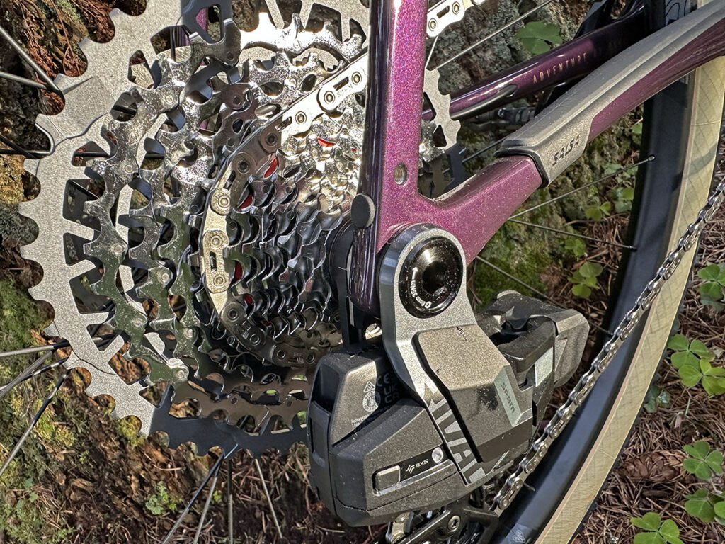 When Salsa asked which model we wanted to test, we opted for the Flyway Rival XPLR SUS. I’ve been curious about suspension on gravel bikes for a long time. My own bikes have flexible fork blades, and we loved the Lauf Seigla with its innovative fork. We’ll see how the Rock Shox Rudy with 40 mm of air spring travel compares. And to me, the Rival group seems like the sweet spot of the range, with plenty of performance, but without the cost of carbon for cranks and other components.