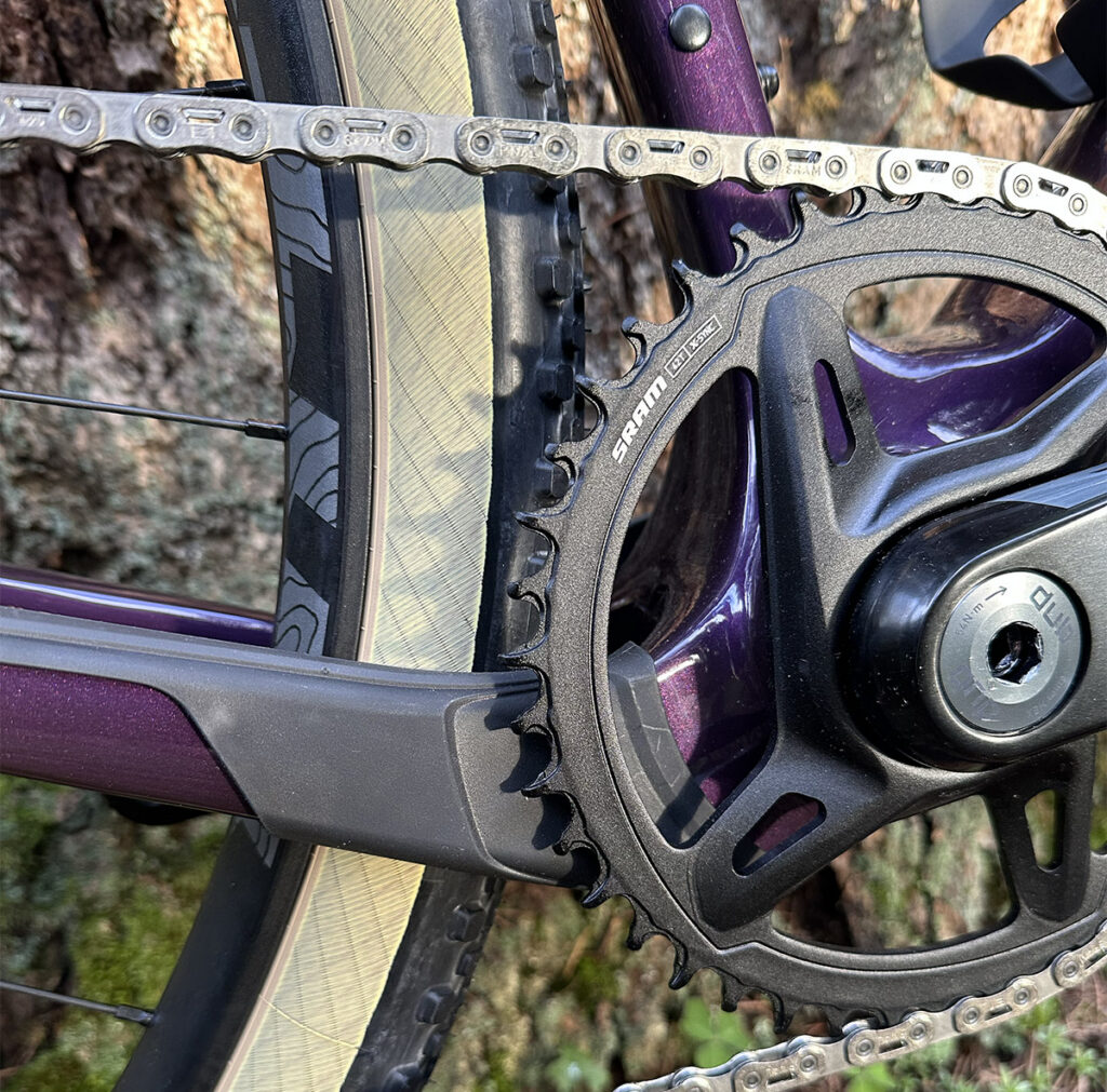 Back in 2019, our test bike was one of just a few Warbird models with One-By cranks. The new Flyways all come with One-Bys, but the frame is compatible with double chainrings, too. Tire clearance is reduced to 45 mm if you mount a front derailleur.