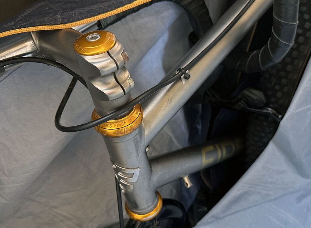 My Firefly is now 10 years old! It now lives in Japan, waiting for me when I visit there. Every time I open the Rinko bag and see the soft glow of the brushed titanium and the tasteful gold anodized logos, I remember the excitement when I first laid eyes on the bike. Made by the wizards at Firefly in Boston, this was my first bike with ultra-wide tires, a proof of concept that 54 mm supple tires could actually work. (Back then, ‘gravel grinders’ still argued whether 35 mm tires were too wide for speed on gravel.)