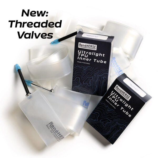 Rene Herse TPU tubes have patented all-metal valves. This eliminates the mysterious leaks that can occur with plastic valve stems—they tend to deform when the metal valve cores are screwed in.