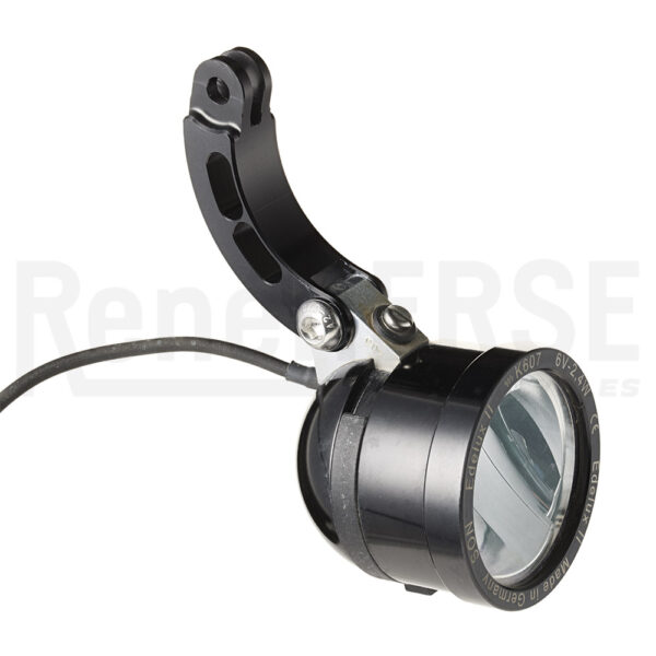 GoPro mounts are incredibly versatile—designed to mount your camera in many locations. That also makes them ideal for mounting your headlight. One end of this holder attaches to your GoPro mount, the other holds your SON or similar headlight. The forked headlight mount holds your light ultra-securely