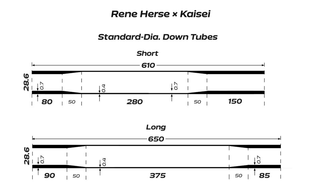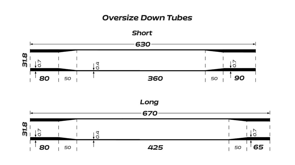 Other companies are offering tubes with thin bellies, too, but usually only in a single length. Since the ends of the tubes need to be thicker to allow for welding or brazing, the bellies are only as long as the smallest frames allow. For the average rider, that means that only half the tube has 0.4 mm walls, and the rest is almost twice as thick at 0.7 mm. That’s why we’re offering two lengths, one with a much-longer belly for taller frames.