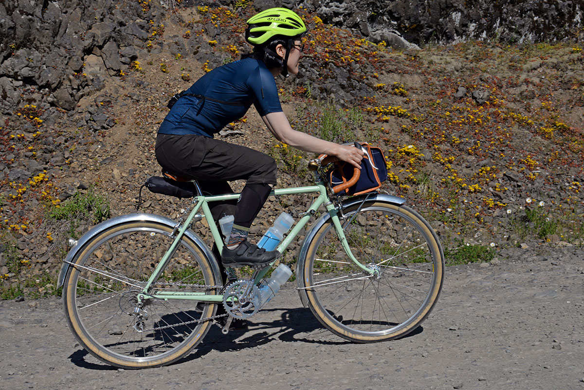 Recently, we’ve added some weight to make our handlebar bags completely waterproof—using waxed fabric—and a strap at the bottom to keep the bag securely mounted on rough gravel roads. They are still lighter than other bags, but not as light as the Concours de Machines bags. (We have a few of those left, if you want the world’s lightest handlebar bag for your bike.)